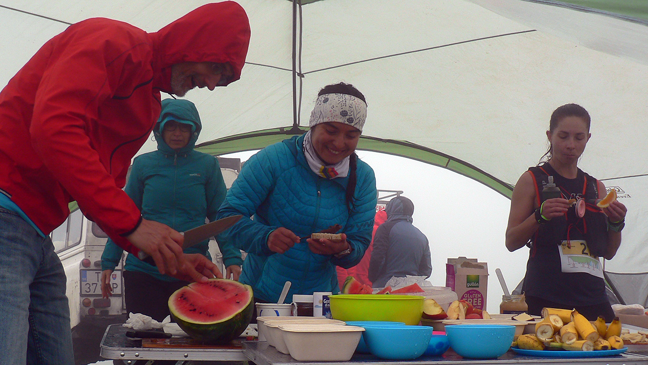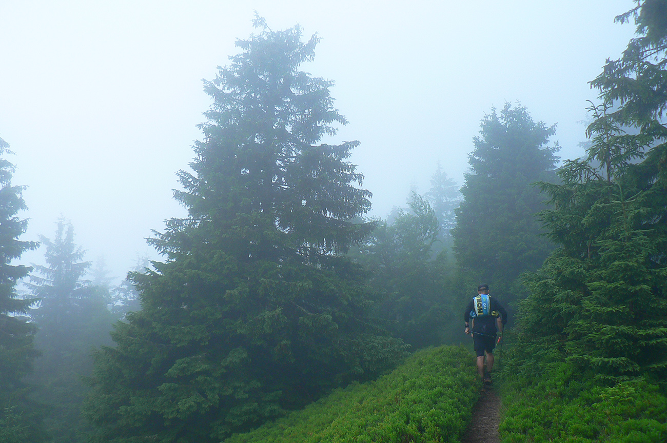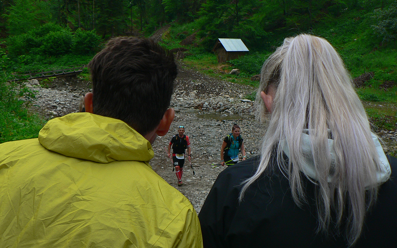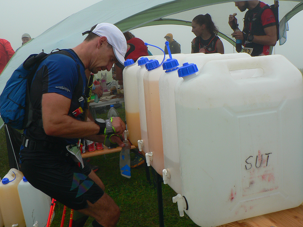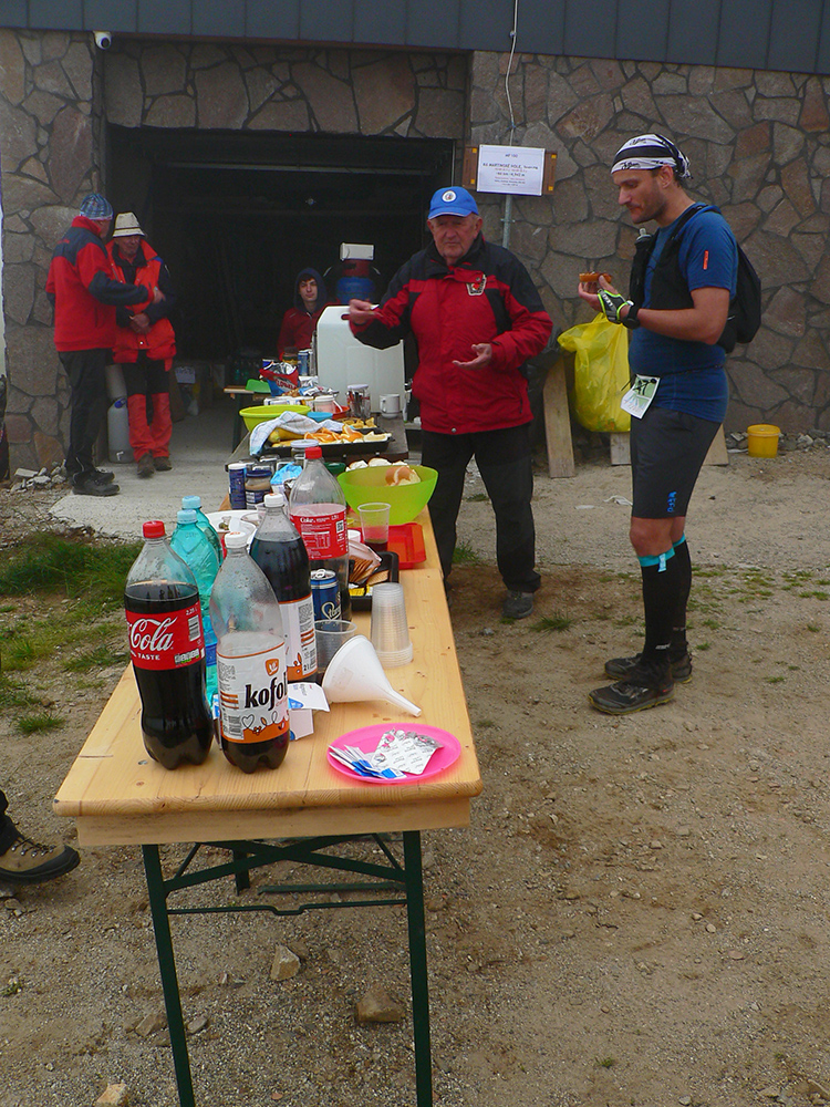 Samozrejme najsvetlejšími bodmi v tom sivom, kopcovitom, hrboľatom trápení boli krmelce. A úplne najlepšie boli tie hmlou navlhnuté piškóty a čipsy na Medziholí – ako predžuté, joooj ako fajne sa dole krkom kĺzali! Nielen my sme boli mokrí ako myši, od potu aj od tej hmly. Samozrejme treba najmä poďakovať dobrovoľníkom, ktorí sa o nás všade starali – kým my sme sa kúpali v mrholení aj vlastnej šťave, oni tam makali naobliekaní, lebo v tých mrakoch asi nebolo moc príjemné nechať sa sprchovať. A potom to po nás ešte upratovať. Inak to poriadne dvíha ego, keď vás obskakujú ultracelebrity, ktorým by sme sa mali poriadne hlboko klaňať...