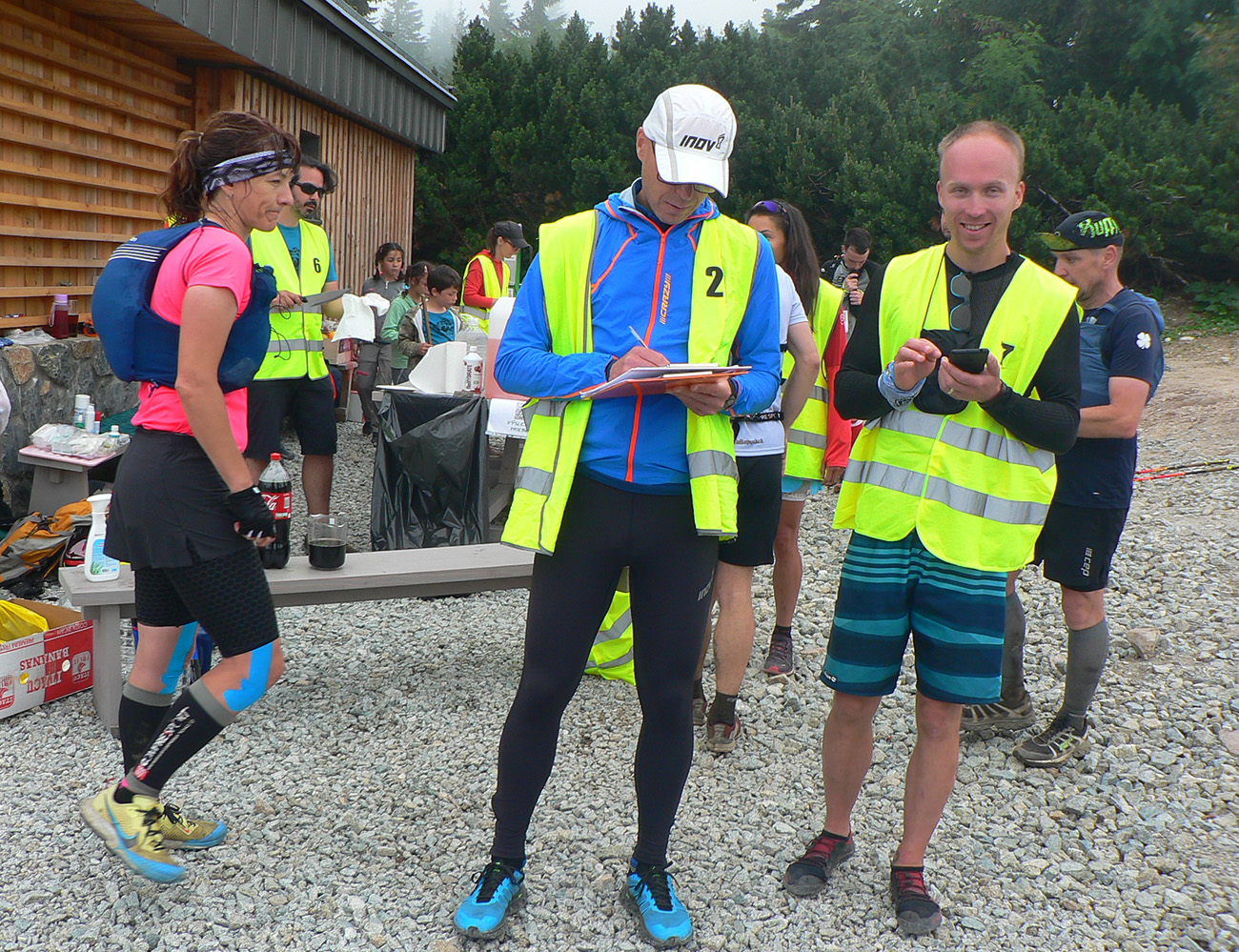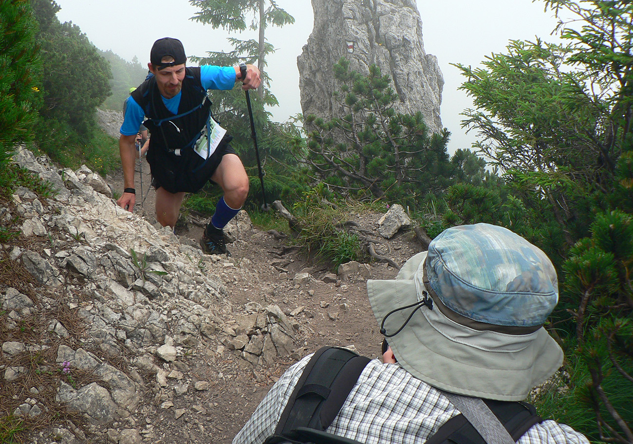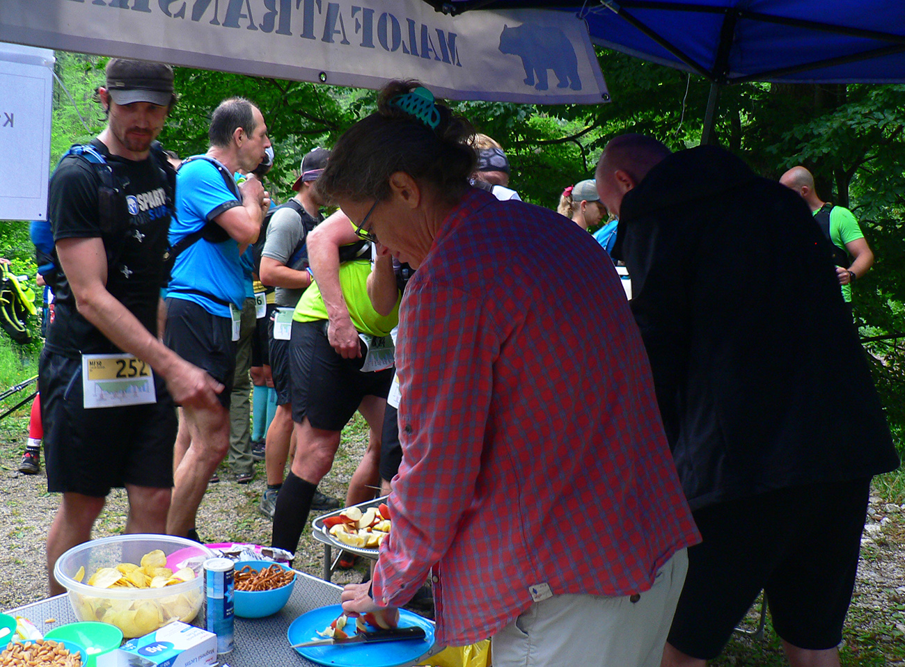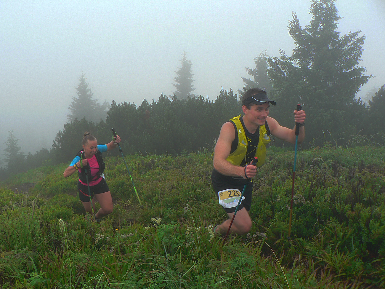 Samozrejme najsvetlejšími bodmi v tom sivom, kopcovitom, hrboľatom trápení boli krmelce. A úplne najlepšie boli tie hmlou navlhnuté piškóty a čipsy na Medziholí – ako predžuté, joooj ako fajne sa dole krkom kĺzali! Nielen my sme boli mokrí ako myši, od potu aj od tej hmly. Samozrejme treba najmä poďakovať dobrovoľníkom, ktorí sa o nás všade starali – kým my sme sa kúpali v mrholení aj vlastnej šťave, oni tam makali naobliekaní, lebo v tých mrakoch asi nebolo moc príjemné nechať sa sprchovať. A potom to po nás ešte upratovať. Inak to poriadne dvíha ego, keď vás obskakujú ultracelebrity, ktorým by sme sa mali poriadne hlboko klaňať...