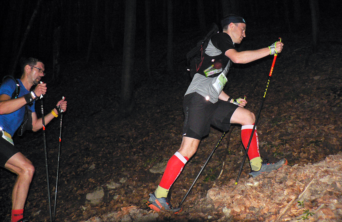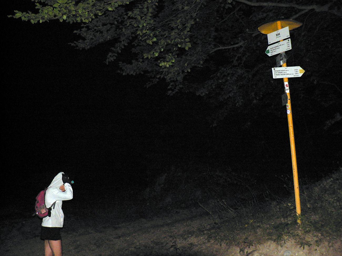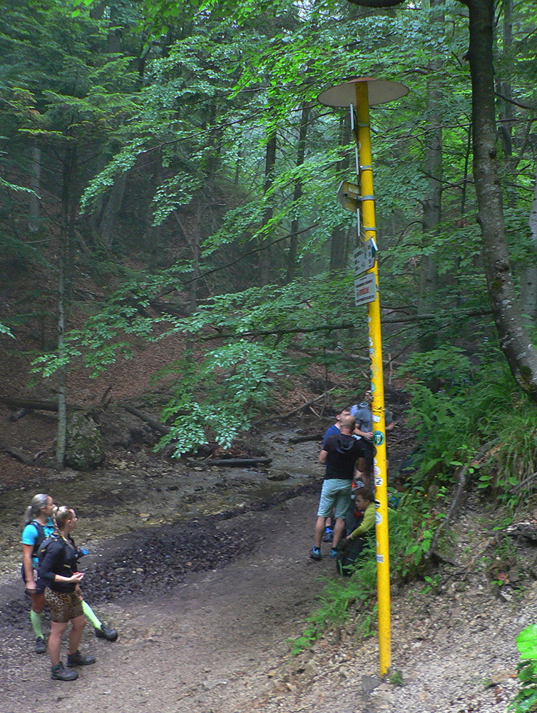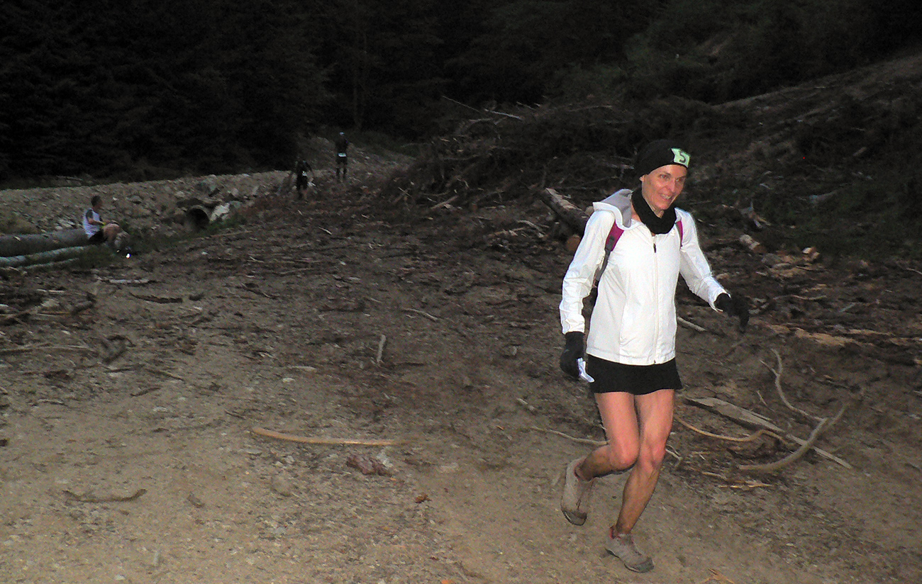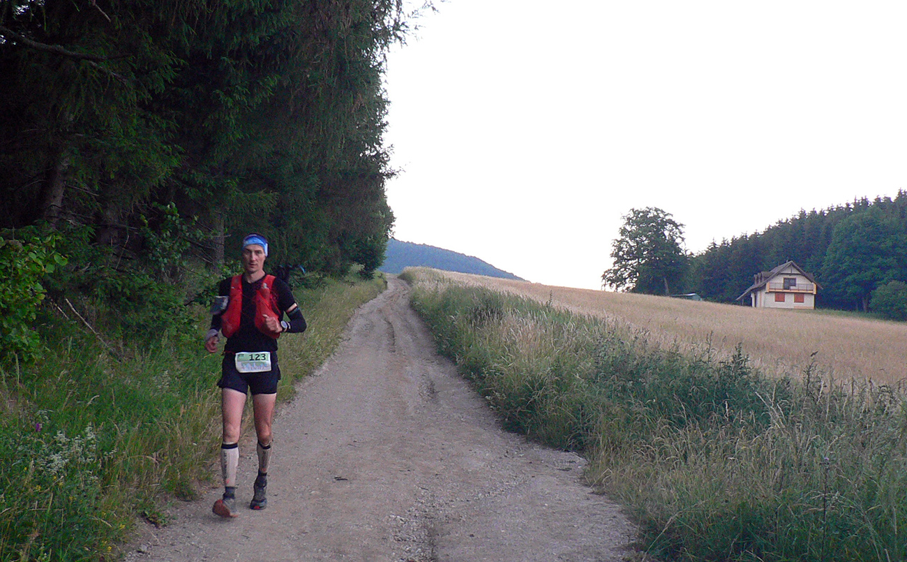 Podarilo sa mi, síce tak poloslepo, ale bez čelovky dostať sa pred desiatou na K7. V Trebostovskej doline no problem a bledobéžová šotolinová cesta nad Valčou ešte dosť kontrastne svietila v tmavom lese, aj jej výmole dobre poznám, tak som si trúfal. A počas týchto teplých letných nocí čím neskôr čelovku zapnem, tým menej mušiek mám na večeru, to už som sa naučil. Ale som si zato preventívne popri hustejších krovinách sem – tam zatlieskal, aby som sám ako večera neskončil. Ale len svetlušky sa v tej hustnúcej tme vznášali naokolo. K7 bola dôležitým ostrovčekom ľudskej lásky na trase, lebo nasledoval najdlhší úsek (nejakých 22 km tuším) k ďalšej kontrole vo Vrícku. Tak poriadne sa zásobiť, prehádzať batoh, aby bola protikrízová chémia a náhradné baterky poruke, čelovku na hlavku a išlo sa. Hore nekonečnou Slovianskou dolinou sme sa dali dokopy tri kusy, lepšie to ubiehalo, aj som poľské slovíčka oprášil. Ďakujem spolutrpiteľom za spoločnosť, až do cieľa v podstate - dobre bolo, v rámci možností zdevastovaného tela a mysle. Každopádne nadišiel čas fotiť už len smerovníky a iné blízke (a najmä nepohyblivé) objekty, lebo za tmy iné neviem.