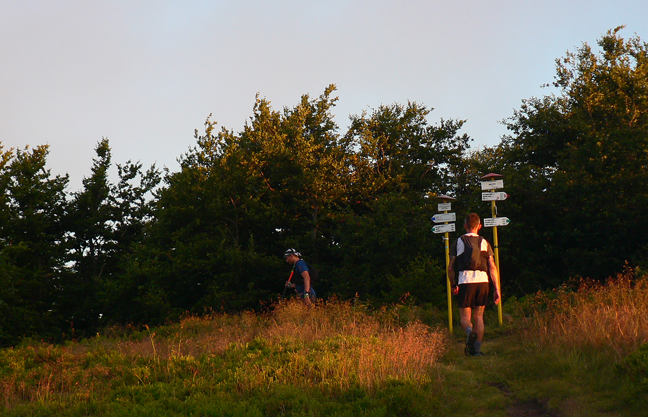 Najnižší bod trasy som ešte prekluskal s opatrným optimizmom (veď z kopca), ale potom to prišlo. Toto stúpanie na Minčol som v rámci MF100 hádam vždy krízoval - a teraz to bolo ešte akési svinskejšie. Aj tá modrá značka je kvôli ťažbe každým rokom akási hnusnejšia. Ani hore na hrebeni som sa nevedel prebudiť. Žeby tá tuková záťaž, ktorú som v bruchu niesol? Nemal som ísť už od Lipovca na colu a cukry? No nič už, zase boli tie perspektívy černejšie, a nie preto, že udrela zlatá hodinka a s ňou sa blížila noc. Myslel som si aspoň, že na dlhšie zakempujem a sa trochu pred nocou spamätám na K6, veď tá nová chata Javorina je dosť veľká. Ale chyba! Len vonku, na vetre, do....!!! Teda moc príjemne mi tam nebolo, chytro som musel stade utiecť. Ale ozaj ma tá cola prebrala, aspoň to. Aj mraky sa začali rozpadávať a slnko krásne zapadalo, aj som zas bežať trochu mohol, dokonca aj do kopca. Veterné a Horná lúka ako nič, a už sme sa v malej skupine prudko ponárali dole – znovu do Turca, do Valče, na druhý najnižší bod trasy, to jest nekonečne a v ústrety noci.