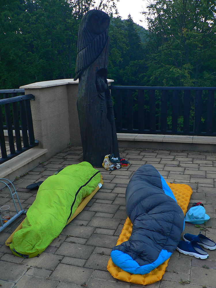 Lebo keď som sa konečne dopotácal do cieľa, s hrôzou som zistil, že ma nečaká žiadny vyhriaty interiér ako vo Veronike, ale všetko sa deje von, na dlažbe pod tým salašom. A ja nič teplé v batohu! Všetci, ktorí nespali, tam poskakovali naobliekaní a Maťo Drozd zapisoval výsledky, obalený v tom spacáku – vraj len na kolená mu bola zima, inak fajn :-) No mne sa teda spacák rozbaľovať nechcelo, tak pekne batoh na chrbát, nech hreje, a pomaličky som si predsa len dal tú originál cieľovú „rovinku“ ku bývalej chate Veronika – lebo na tie miesta už pomaly začínalo svietiť vychádzajúce slnko. Len fukerku som obliekol, stačila ako - tak. Nebol som sám s takým nápadom, viacej nás tam bolo, takých ranných jašteríc. Potom onedlho, keď slnko zahnalo tiene aj pod salašom, už nám bolo sveta žiť! A aj odvoz sa našiel do ZA a aj vlak mi odtiaľ išiel parádne rýchlo, tak som sa s vďakou rozlúčil celkom skoro a davaj domov, spamätávať sa.
