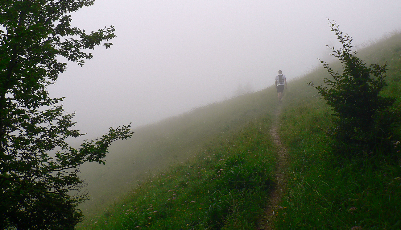 Potom cez Grúň, Štefanovú až pod Rozsutec je podklad komfortnejší, len zas furt tie kopčiská - kde sa tu na rovine nabrali a prečo musíme furt stúpať??? Ešte že vďaka tej hmle nebolo vidno, kam až vysoko tie stupáky vedú. A keď už ideme hore, prečo potom tam nemôžeme ostať a musíme hneď dole? „Keď ste si ma vyliezli, tak si ma aj zlezte!“ Koniec citátu – takúto nádhernú parafrázu v kontexte miestnej jánošíkovskej tradície zo seba dostal nemenovaný bývalý kamarát. Myslím, že je hodná zápisu do budúcej zlatej knihy MF100!
