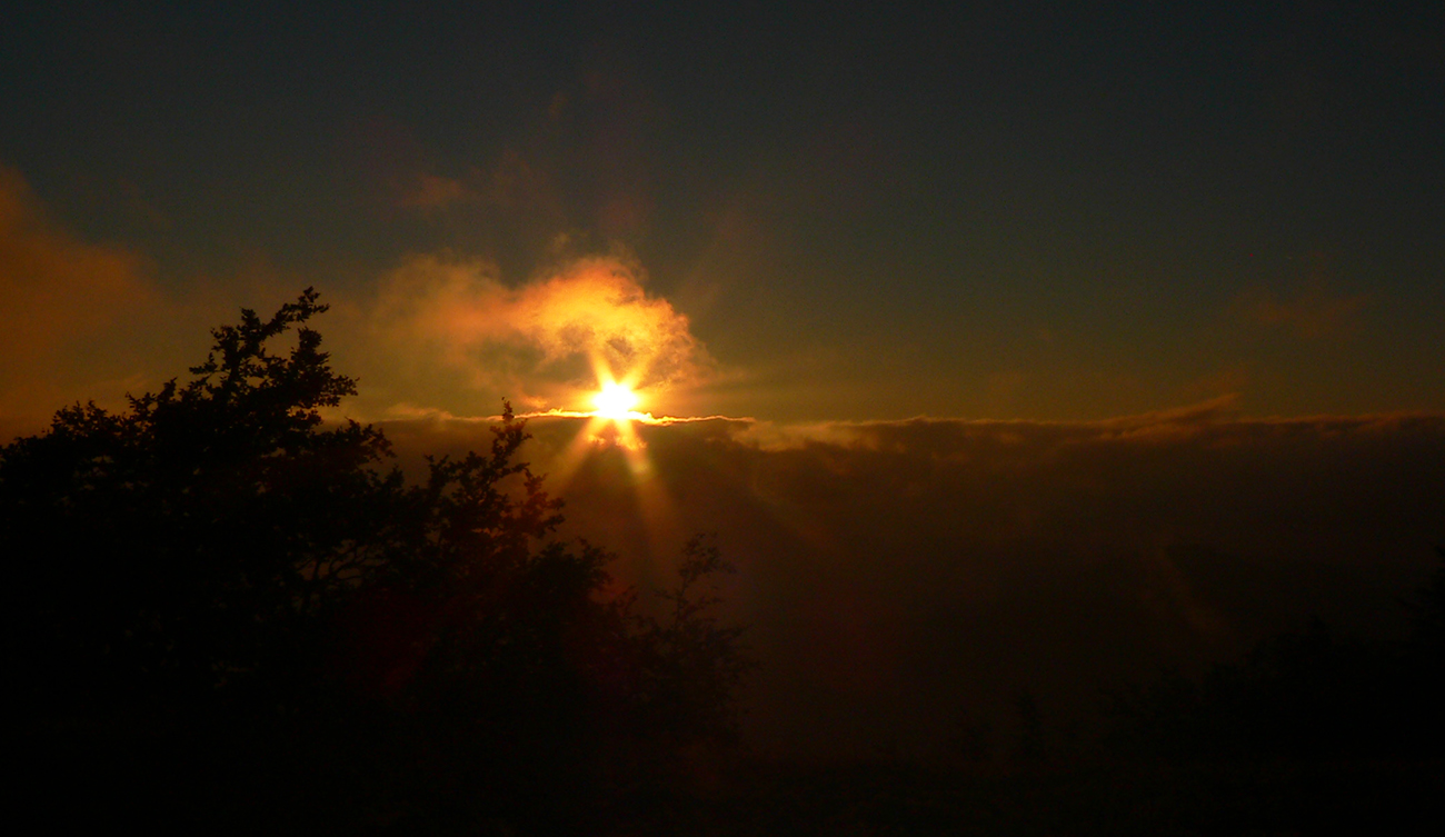 Tak už len posledný stupák, takmer až na Kľak. Odporne strmý, aj keď na pôvodnú strechu z Vríčanského sedla pod Ostrú skalu nemá. Zato je dlhší. Nám trom sa začalo za chrbtami pomaly brieždiť, tak som si povedal, že keď už, pozriem sa až hore ku krížu. Poliak Max sa pridal, Silvia utekala dole do cieľa. Do východu slnka bolo síce ešte ďaleko, ale farebná linka na východe už nakreslená bola, tak som dal aspoň roztrasené foto. A rýchlo dole, lebo taký studený fičák tam bol, že až. Ale rýchlo len do lesa, tam už bolo fajn. Potom už zas pomaly - načo sa ponáhľať do cieľa pred piatou, keď bus ide až o pol desiatej? A dobre som spravil!